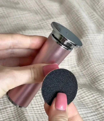 Elektryczne narzędzie do pedicure ⚡ (aluminiowa obudowa, różowy design), które bezboleśnie usuwa martwy naskórek, zrogowacenia i suche pięty.