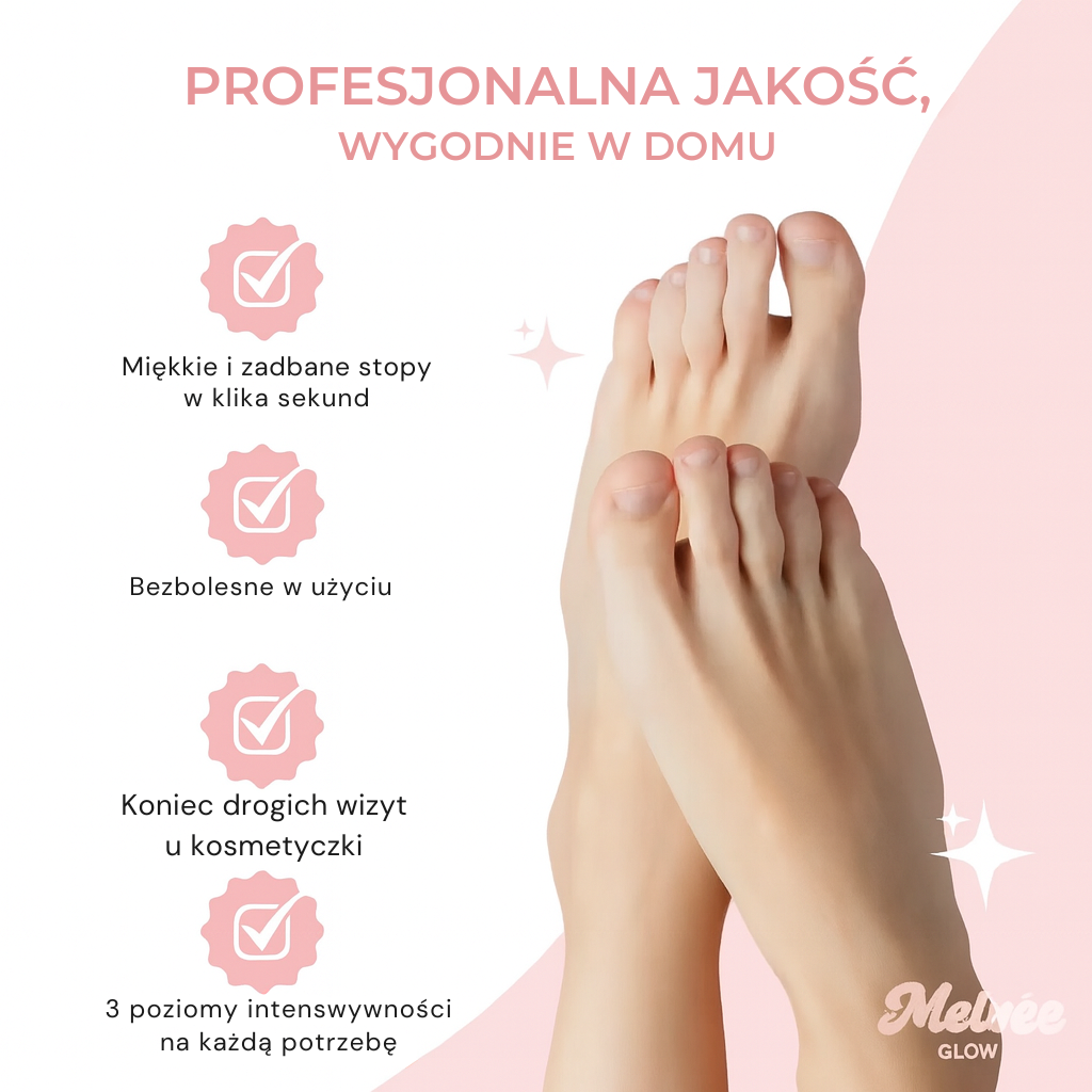 Zmień swoje stopy dzięki MelvéeGlow – będą bardziej miękkie i zdrowsze niż kiedykolwiek. W ciągu zaledwie 2 minut znikną zrogowacenia.